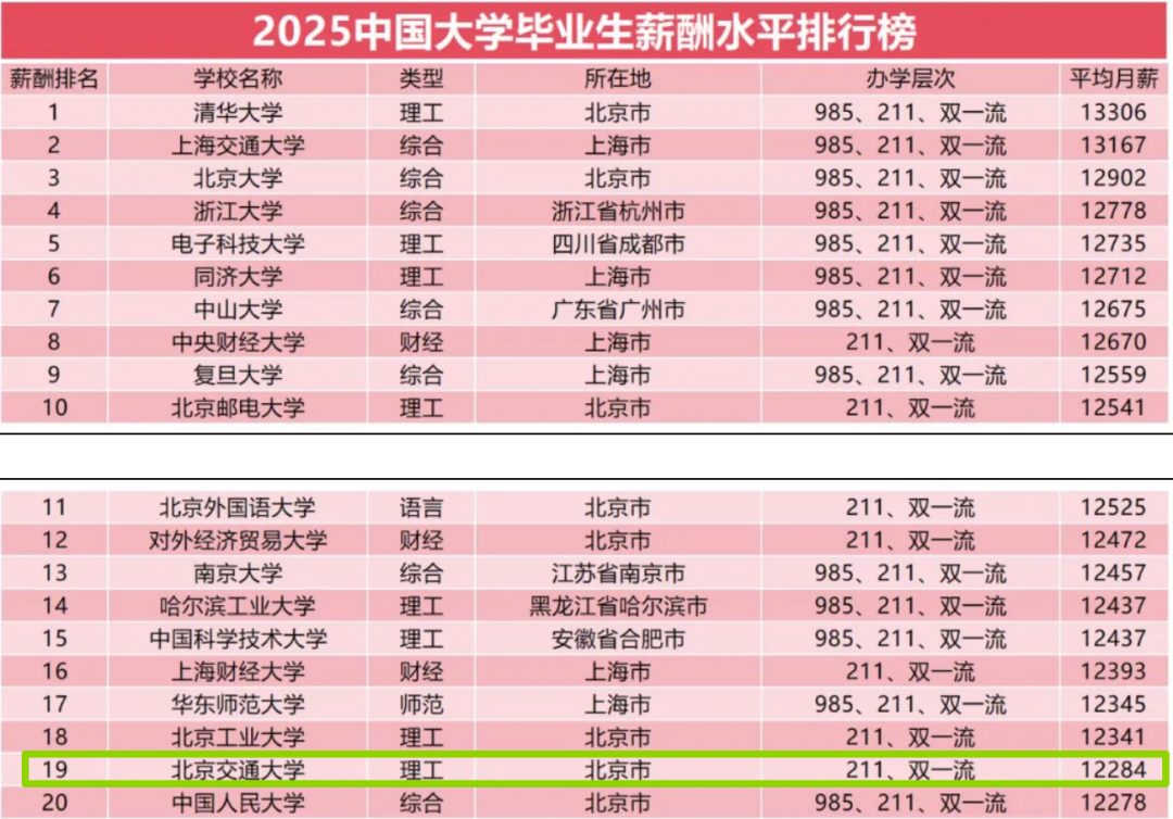 轨谈铺到那儿,交大东谈主的底气就到那儿。 ——女共事说 ![]() 点赞、推选,趁机★标俺们 四舍五入作念新东方精神鼓动! “十五五”考虑提出来了! 改日五年,加速开导交通强国,完善当代化详细交通运载体系,健全多元化、韧性强的海外运载通谈体系。 ![]() 图片起首:微博@求是 这时分有东谈主要问了,上哪所大学能站在这些行业风口,收拢职业机遇?不妨望望这所学校——北京交通大学。 它是一所自带 “速率与容颜” 的百年名校,在轨谈交通规模,是统统的“王牌赛谈”,中铁每年齐来校抢东谈主,许多毕业生一毕业就端上“铁饭碗”。 “清北复交,北交占俩”,虽带着几分嘲谑,却活泼谈出了学生对它的偏疼,更印证了这份实力的含金量。 ![]() 图片起首网罗 这实力绝非泛论,看成复古高铁、智能交通等规模发展的“双一流”高校,它用120余年的效力,见证了中邦交通职业的崛起,更书写出了中邦交通训诲的活泼缩影。 ![]() 01 交通翘楚 不啻A+ “学交通,来北交大”,这是行业内流传已久的共鸣,也让北交大学子在升学作事赛谈上沿途领跑。 近三年本科毕业生国表里深造率高达71%,出洋(境)深造的学生中进入QS世界前100强院校占比近75%(包括斯坦福大学、帝国理工等)。 ![]() 图片起首:微信公众号@北京交通大学 作事率踏着实95%以上,赴信息期间、交通运载、动力电力等重心规模作事东谈主数超90%,进入世界500强、中国500强、98家央企、政府等单元作事比例超65%。中国国度铁路集团、中国中铁、华为、字节超过等齐是中枢老板,获利优质offer。 ![]() 图片起首:微信公众号@北京交通大学 学校以700余场年度招聘会、“互联网 + 作事”24小时服务平台添砖加瓦,学生作事服务欣然度超98%,让每一位学子齐能在求职路上少走弯路,省略get联想职业。 也正因全标的的作事提拔,从北交大毕业,可谓是真确杀青“高薪不是梦”、“作事有底气”。 在薪资领略上,北交大毕业生相似亮眼。在中国薪酬网公布的《2025年寰宇高校毕业生薪酬排名榜 TOP200》中,其毕业生平均薪酬达12284元,排在第19名;尤其是在轨谈交通、智能基建等黄金赛谈,毕业生入职3年薪资涨幅普遍超 60%,年薪30万不是梦。 ![]() 图片起首:微信公众号@海文总部 除了高薪,踏实也相似是北交大毕业生的作事标签,其国企作事比例超56%,不仅手合手踏实编制,更能享受住房补贴、高比例公积金、子女入学等完善福利,真确杀青踏实与高薪双丰充。 作事的底气,源于学校A+学科的硬核背书,看成“交通界黄埔”,北京交通大学以“交通”为中枢特色,变成了以工科为主,多学科勾通发展的学科体系,尤其在轨谈交通规模,实力号称“行业标杆”。 在寰宇第四轮学科评估中,北交大的交通运载工程获评A+品级,与西南交通大学并排寰宇第一,成为无可争议的王牌学科。2025年软科中国最佳学科排名中,24个学科上榜,交通运载工程、系统科学陆续稳居榜首,获评“中国顶尖学科”,彰显了统统的率先上风。 ![]() 图片起首:微信公众号@北京交通大学 放手2025年5月,学校有7个学科进入ESI全球前1%,其中工程学、筹画机科学、材料科学等学科连续保持高排名,与交通运载工程变成协同发展的学科群。 在师资与科研平台方面,北交大相似底气十足。放手 2025年3月,学校聘有闇练、副闇练1300余东谈主,中国科学院、中国工程院院士10东谈主。 学校还建有“轨谈交通戒指与安全”国度重心实验室、“智能交通系统”国度工程研究中心等国度级科研平台,以及40余个省部级重心实验室、工程中心,为科研立异提供了浩大复古。 “酌水知源,爱国荣校”,北京交通大学袭取“知行”校训,肩负新的劳动,正以愈加开拓向上的精神向着特色较着世界一流大学的指标迈进。 02 百年轨迹 薪火相传 北京交通大学看成交通大学的三个源泉之一,历史渊源可记忆到1896年。 洋务派大员盛宣怀在上海创办南洋公学的同庚,山海关北洋铁路学堂在唐山成立,这就是中国铁路料理高档训诲的最早雏形,也成为北交大的历史起先。 1909年,在“收回路权”、“实业救国”的劳动召唤下,时任邮传部司员曾鲲化,一纸上书,促成了铁路料理传习所创立。在北京府右街闲置的“度支公所”旧衙门,中国第一统共意培养铁路料理东谈主才的高档学府就此降生。但“交通强国”的基因,从第一天就写进DNA。 ![]() 图片起首:北京交通大学官网 后历经民国时期的院系退换,先后并入唐山工业有益学校、北平大学工学院等院校的联系学科,慢慢变成以铁路交通为中枢的办学神态。 新中国成立后,学校迎来要津发展节点。1950年,中央东谈主民政府政务院决定将学校命名“朔方交通大学”,奠定了学校在寰宇交通训诲规模的进击地位。闻明桥梁工程人人茅以升曾担任校长,并教导学校工科开导,进一步强化了“重施行、强讹诈”的办学特色。 ![]() 图片起首:微信公众号@北京交通大学 上世纪五十年代末,寰宇高校院系退换海浪中,学校部分学科迁往西安,组建西安交通大学,而留在北京的部分陆续以朔方交通大学方法办学,变成“一校两地”的发展神态。 1994年,肃肃改名为“北京交通大学”。 1996年,成功入选国度“211工程”重心开导高校,迈入高速发延期。 2017年,北交大凭借在交通运载规模的深厚积淀,入选国度首批“双一流”开导高校。 连年来,北交大永久聚焦国度要紧计谋需求,科研实力尽显“国度